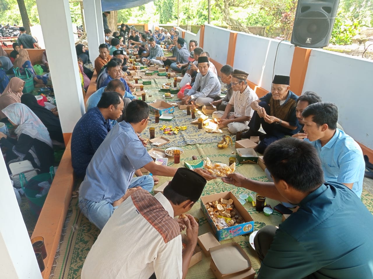 Selesai doa warga langsung membuka wadah tenong dan menyantap makanan yang dibawa. Menariknya peserta akan menawari dan mempersilahkan masyarakat umum yang hadir untuk juga menikmati makanan yang mereka bawa.