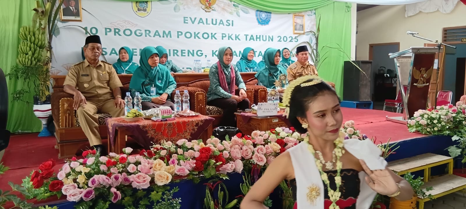Acara evaluasi diawali dengan penyambutan rombongan dan sajian Tari Gambyong oleh dua penari remaja.