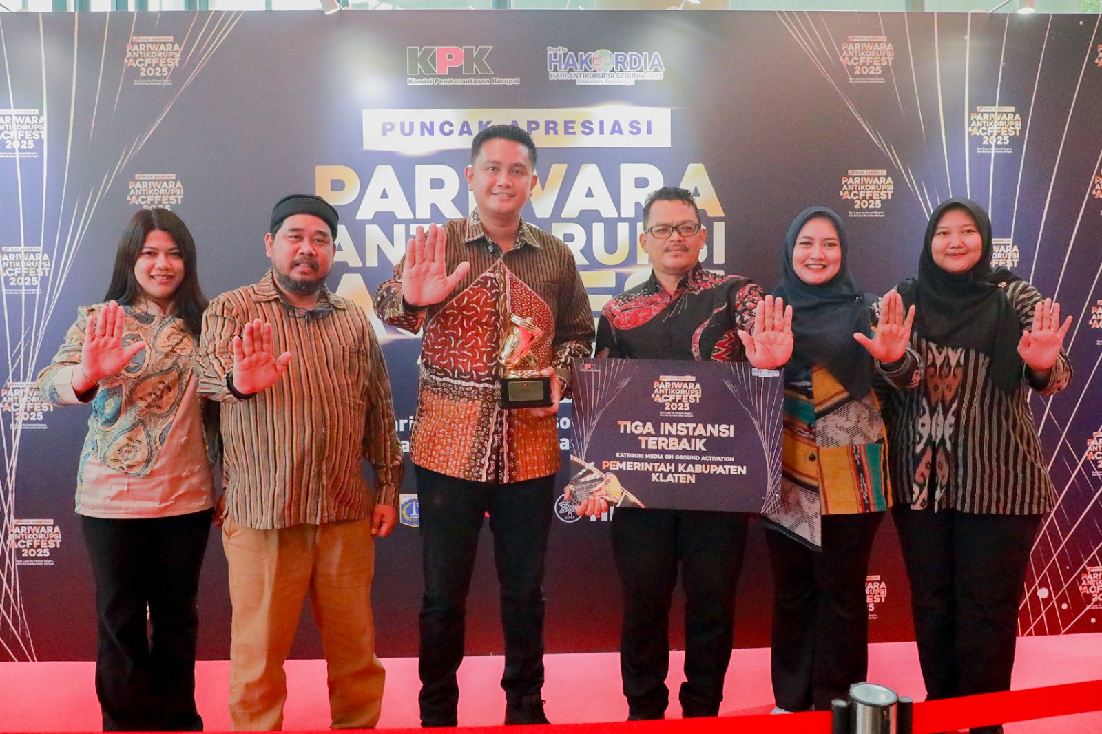 Lintasklaten.com – KLATEN- Pemerintah Kabupaten (Pemkab) Klaten meraih penghargaan pada ajang Puncak Apresiasi Pariwara Antikorupsi & ACFFEST 2025 kategori Media On Ground Activation.