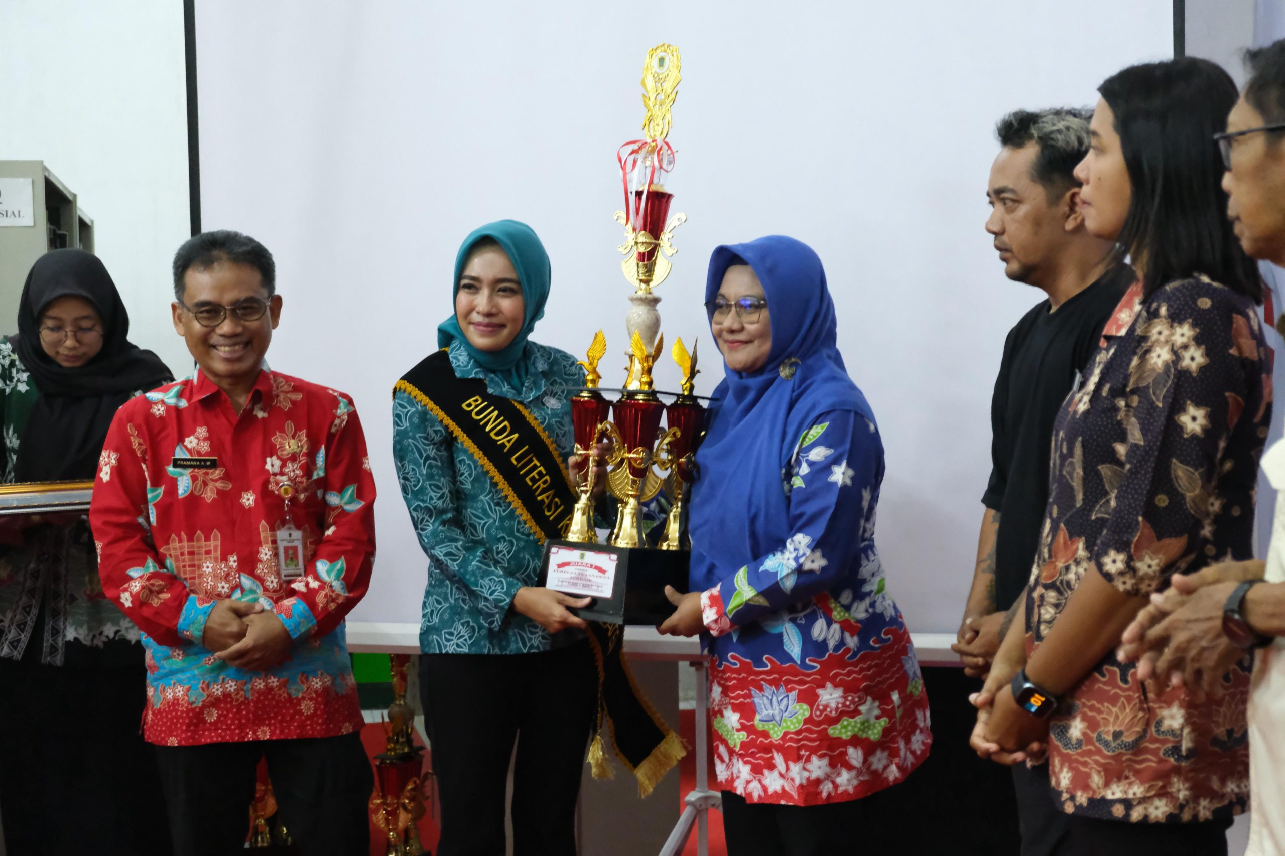 Bunda Literasi Kabupaten Klaten, Fahrani Hamenang didampingi Kepala Dispersip, dan Sekretaris Dispersip secara langsung menyerahkan piala,piagam,dan penghargaan kepada seluruh pemenanng, di Kantor Dinas Perpustakaan dan Kearsip, Selasa (10/06/2025).