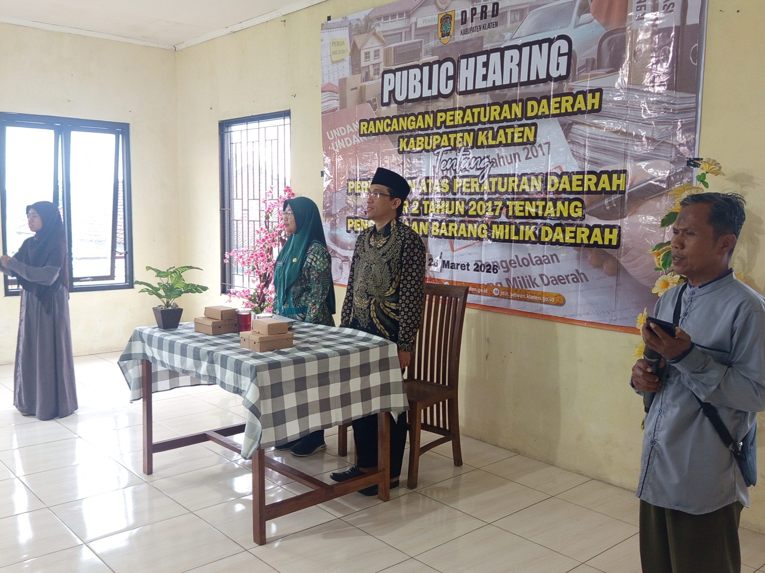 PUBLIC HEARING anggota DPRD Klaten dr. Yudi B. Prabawa terkait Rancangan Perubahan Peraturan Daerah No 2 Tahun 2017, Tentang Pengelolaan Barang Milik Daerah