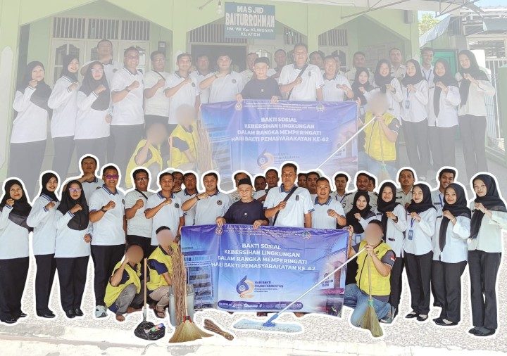 Lintasklaten.com – KLATEN – Dalam rangka menyambut Hari Bakti Pemasyarakatan (HBP) ke-62. Lembaga Pemasyarakatan (Lapas) Kelas IIB Klaten menggelar aksi bakti sosial dengan membersihkan fasilitas umum di lingkungan sekitar kantor.