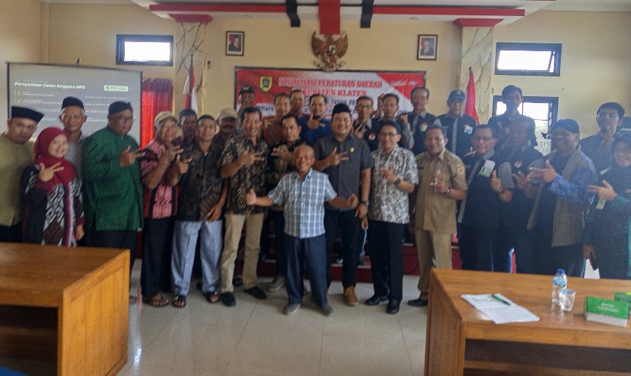 Lintasklaten.com – KLATEN – Anggota DPRD Kabupaten Klaten dari Tim I yang terdiri dari Bahtiar Joko Widagdo ( Golkar ), Azis Safrudin ( Gerindra ), Yudi Kusnandar ( PDI Perjuangan ), dr. Yudi B. Prabawa ( PKS ) menggelar Sosialisasi Perda No 14 Tahun 2025 Tentang Badan Permusyawaratan Desa ( BPD ).
