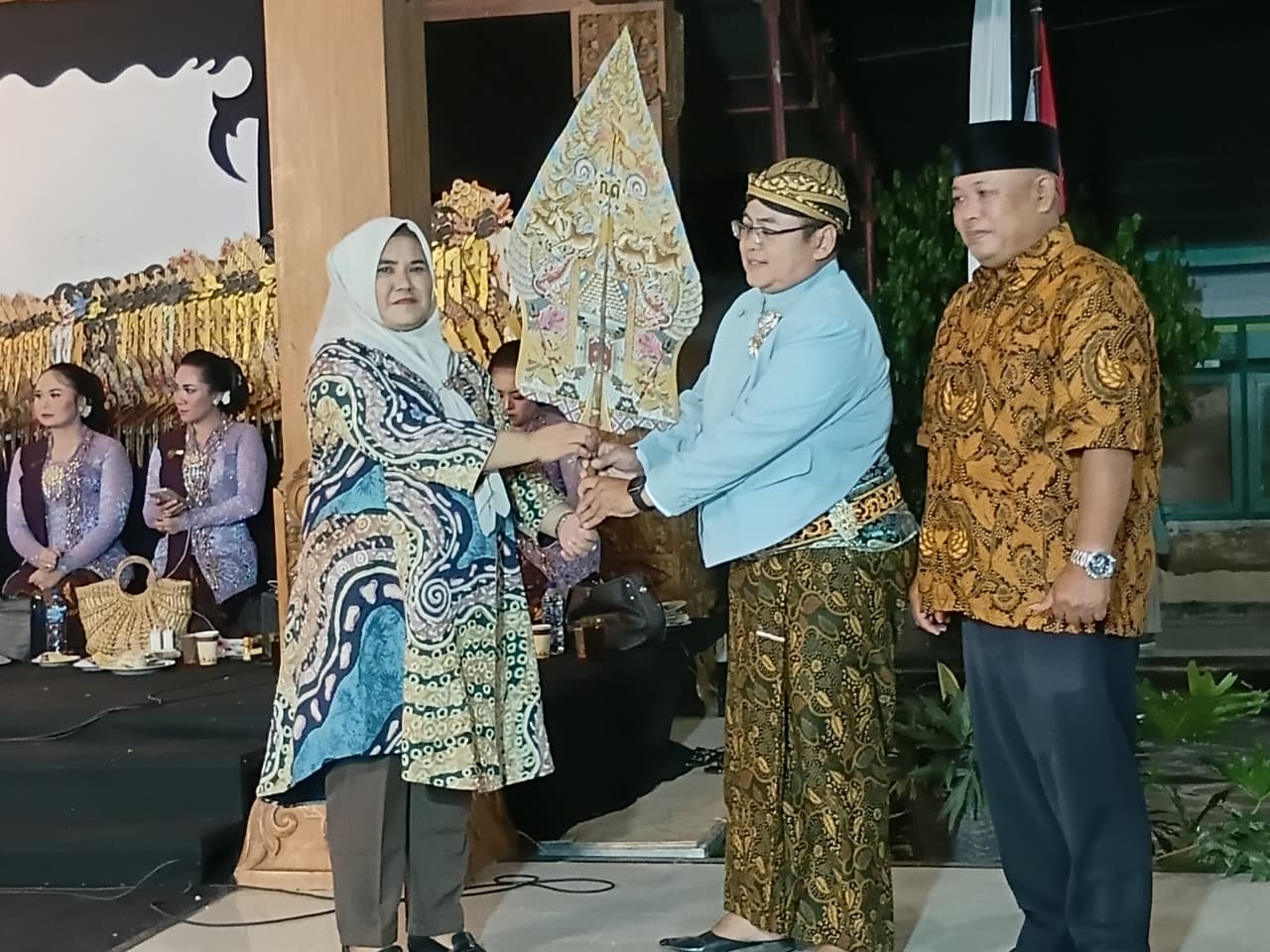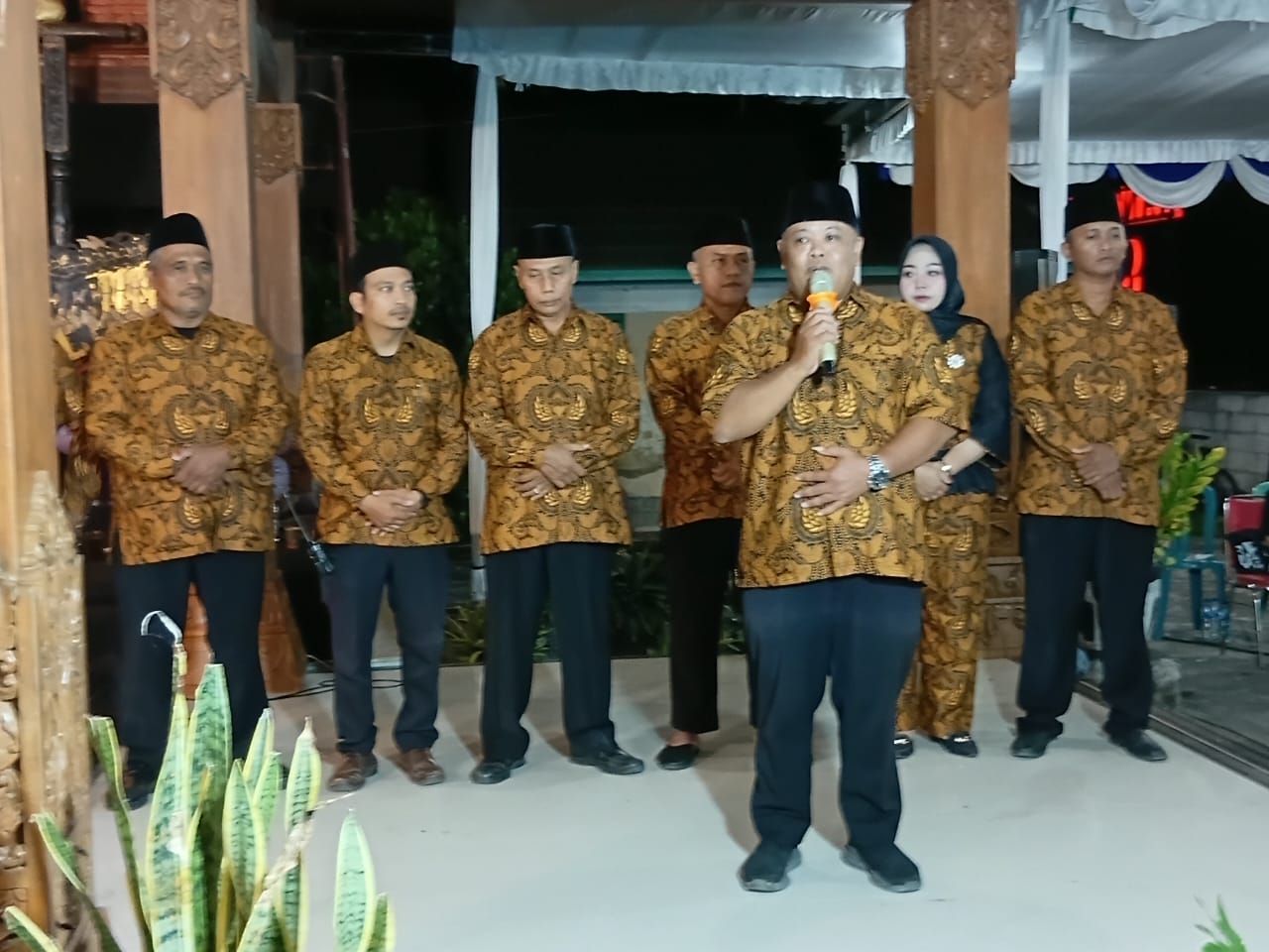 Wakil Bupati Klaten Benny Indra Ardhianto memberikan kata sambutan disaat limbukan tiba atau tampilnya Gareng Tralala dan Mbok’e Ganden muncul mengocok perut penonton.